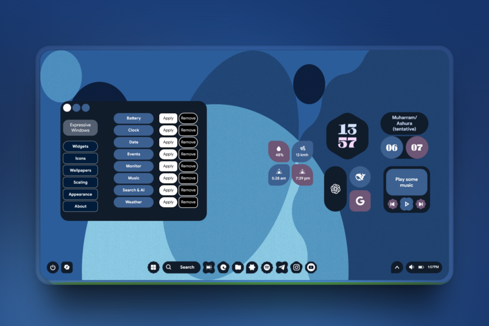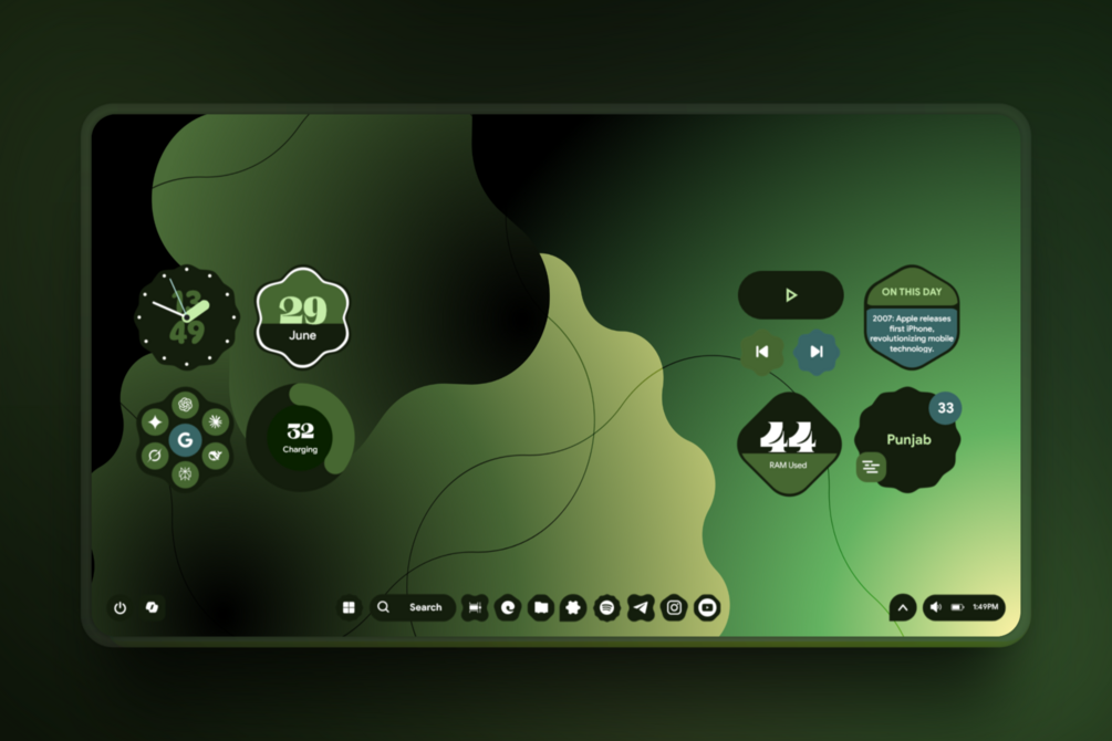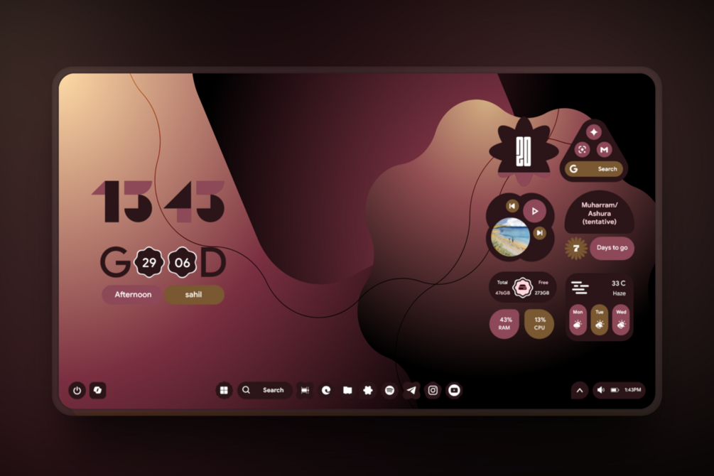 Rainmeter skin inspired by Google's material 3 expressive design language, for windows devices.